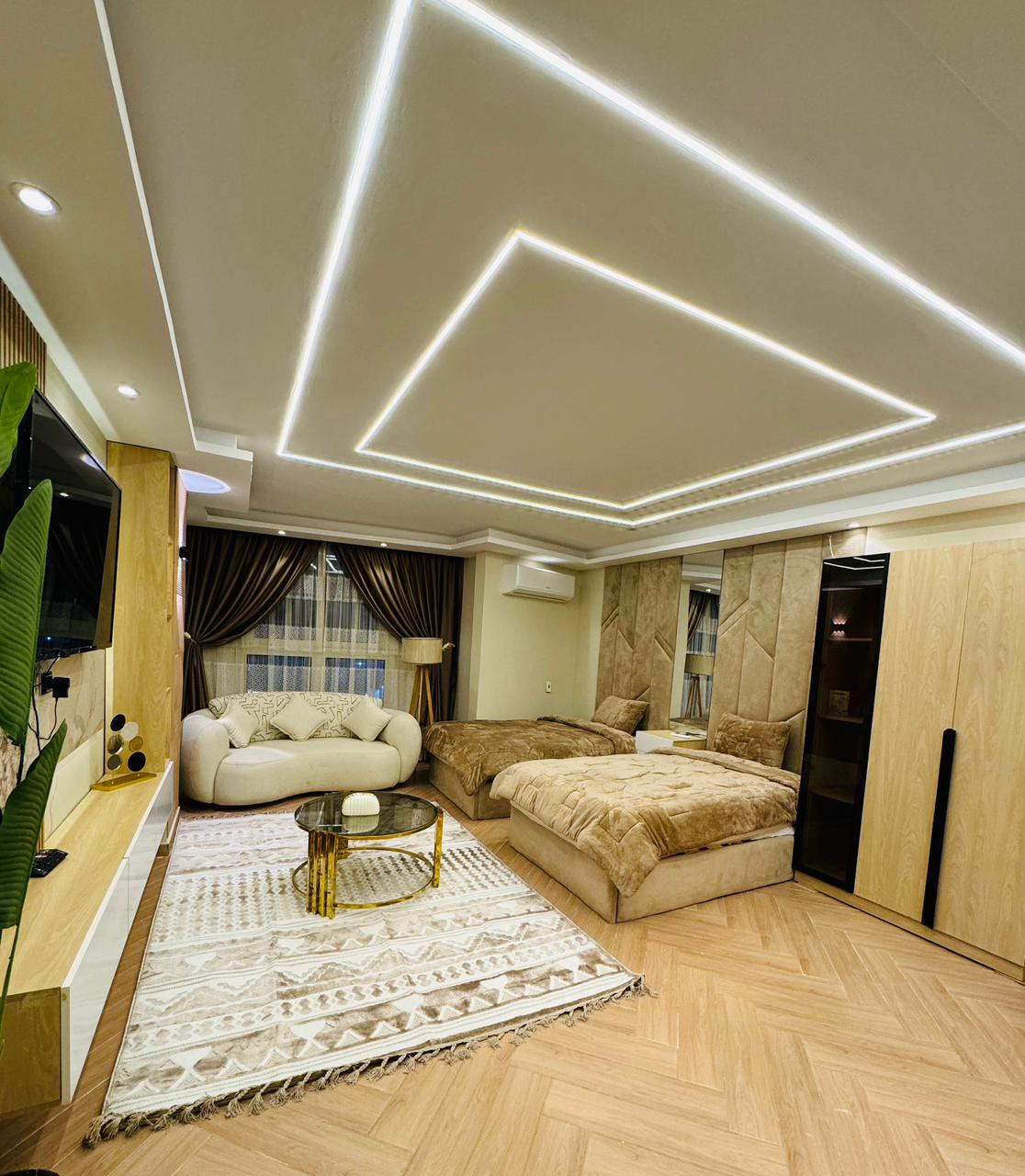 You will stay in a luxury apartment offering a comfortable bedroom with two beds, a private bathroom, a spacious living area, and a fully equipped kitchen with all modern facilities.